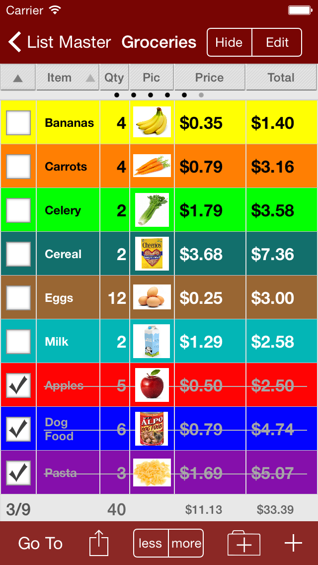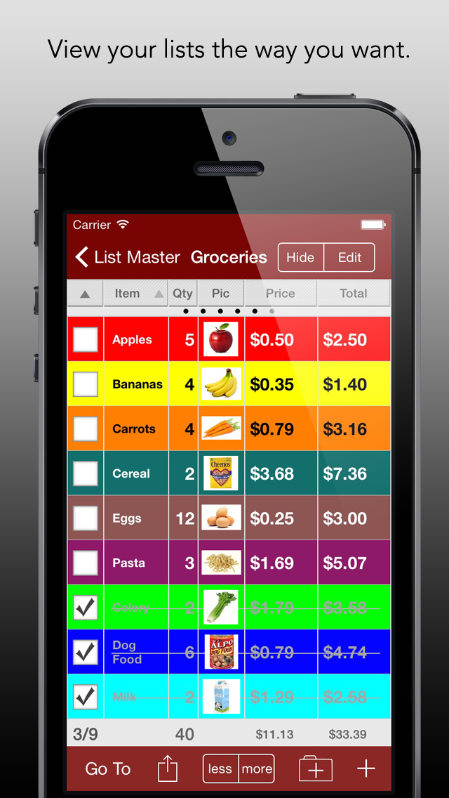 Great to use on-the-go. Setting up a list or entering items is fast and easy.